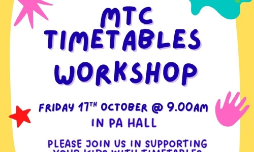 Year 4 Timetables workshop on Friday 17th October at 9.00am in Pa hall